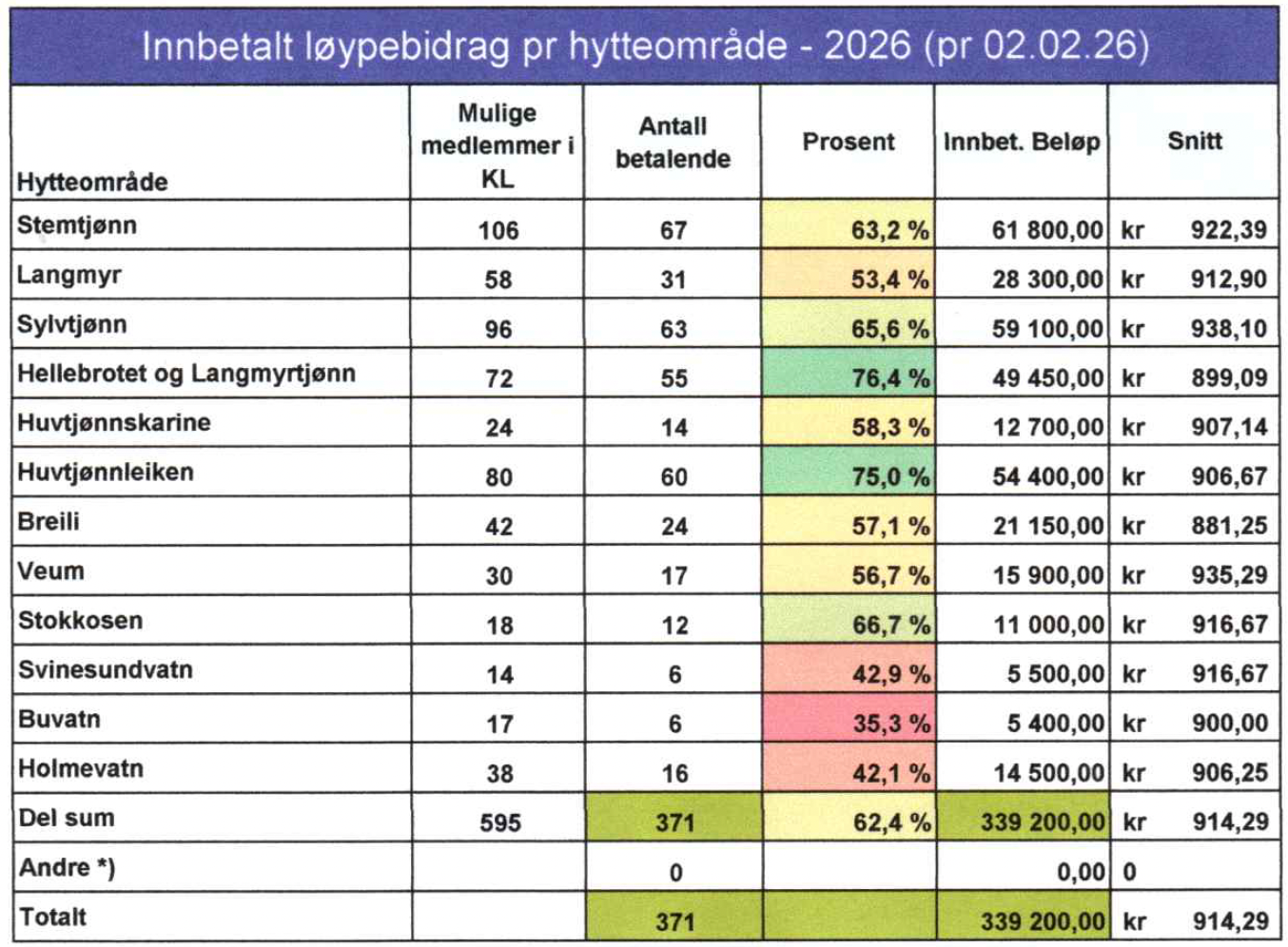 Løypebidrag pr hytteområde